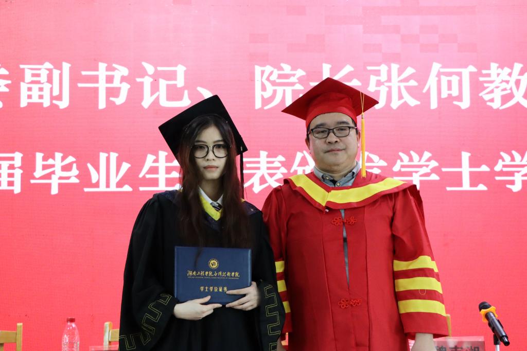 “祝贺你们如期完成学业,即将踏上新的征程,开启人生新的篇章!”在校生代表经济学2181班陈吉辉为毕业生送上最诚挚的祝福。“践行湖工校训,弘扬湖工精神,不负韶华,不负时代,不负人民,在青春的赛道上奋力奔跑,跑出当代青年的最好成绩”。