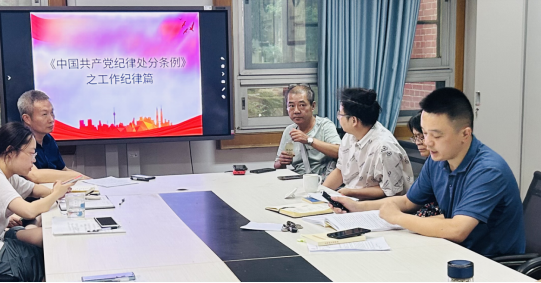 视频学习后,教工支部书记刘杰以《中国共产党纪律处分条例》之“工作纪律”为主题讲了一次党课。他针对党组织负责人在工作中不负责任或者疏于管理,党组织不履行全面从严治党主体责任或者履行全面从严治党主体责任不力,在考试、录取工作中,有泄露试题、考场舞弊、涂改考卷、违规录取等13种违反工作纪律的行为进行了解读。
