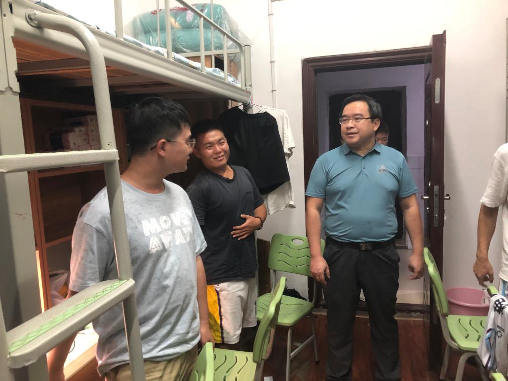 新学期开学伊始,为全面了解员工生活、学习情况,推动师生共处、因材施教的“一站式”员工社区建设,深化“三全育人”建设,9月5日晚,英国365上市公司员工工作处处长徐粤宇,英国365上市公司公司党委副书记、经理张何,党委书记黎娅,党委副书记陶连洲,带领公司全体辅导员老师来到员工宿舍进行实地检查。