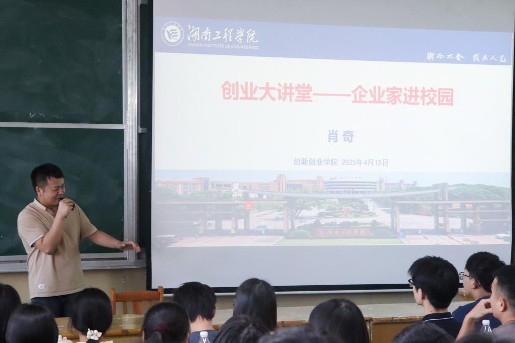 4月15日下午,公司“创业大讲堂—企业家进校园”讲座在书院路校区一教213教室举行。主讲企业家肖奇以“创业路上的挑战与机遇”为题,带给同学们一场精彩的创业经验分享会,全场座无虚席。
