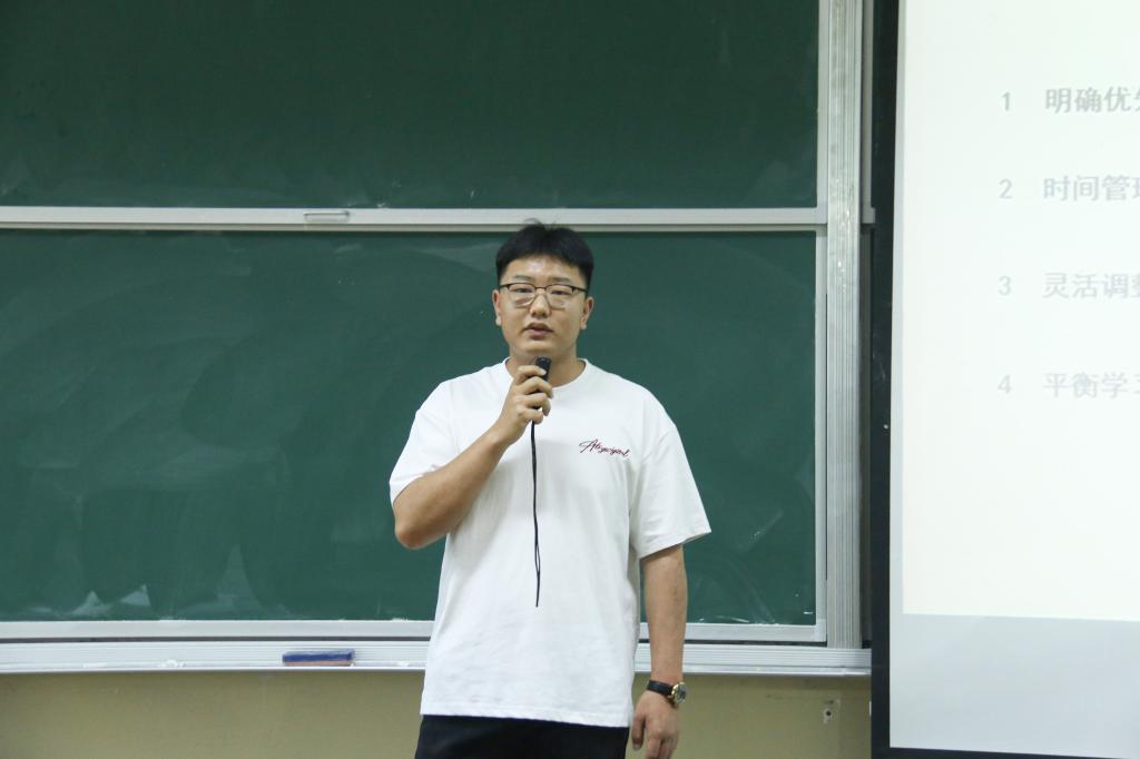 朱俊杰同学即将到湘潭大学攻读研究生学位,他则聚焦专业知识深造路径与大家分享生涯规划。他建议同学们将课程学习与个人爱好有机结合,对于每一门科目都需“靶向突破”。针对跨专业考研热点,他提醒同学们“要深入分析目标院校的命题规律,强化个人专业知识基础”。
