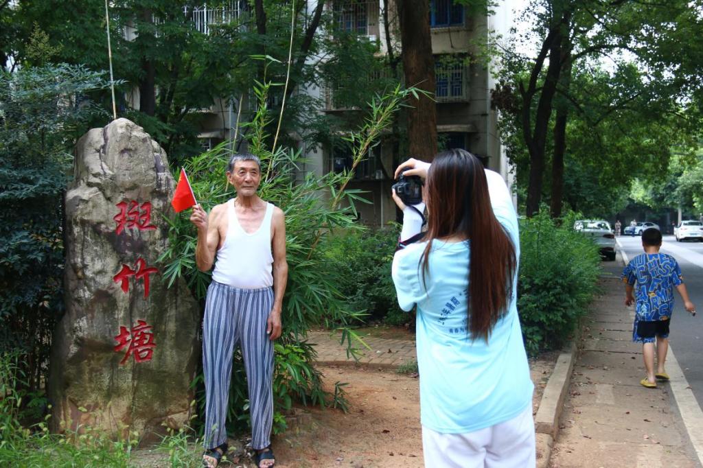 针对小区中老年群体常出门下棋、散步的特点,志愿者们准备了气球、玩偶、五星红旗等道具,在社区主干道旁的休闲娱乐区布置好简易摄影场地,以快捷冲洗照片、记录当下时刻和公益性三大优势吸引小区居民们前来参与活动。拍摄过程中,志愿者们耐心地为他们整理衣装、调整姿势,用镜头记录当下的幸福笑容,收到居民们一致好评。