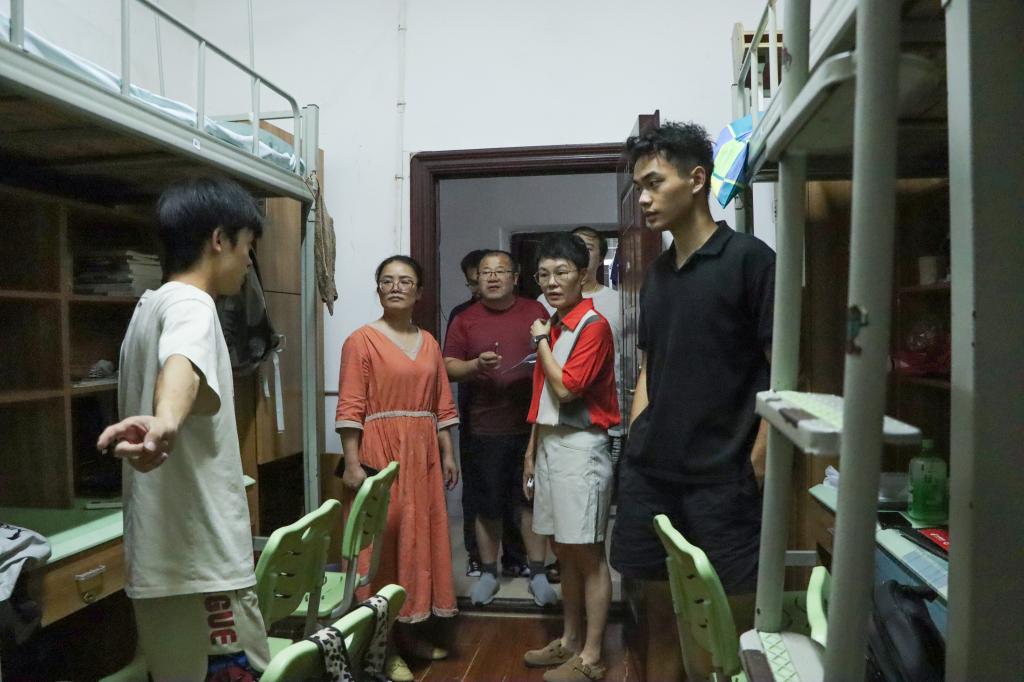 刘琤一行深入南六栋、七栋、八栋、十栋、综一栋及新生宿舍,关注宿舍设施维修情况,提醒宿管们应及时更新老化设备。对于旧床楼梯安全问题,要求宿管们结合整栋楼情况报告,尽快安排后勤基建部门到现场查看并积极整改,确保同学们的安全。