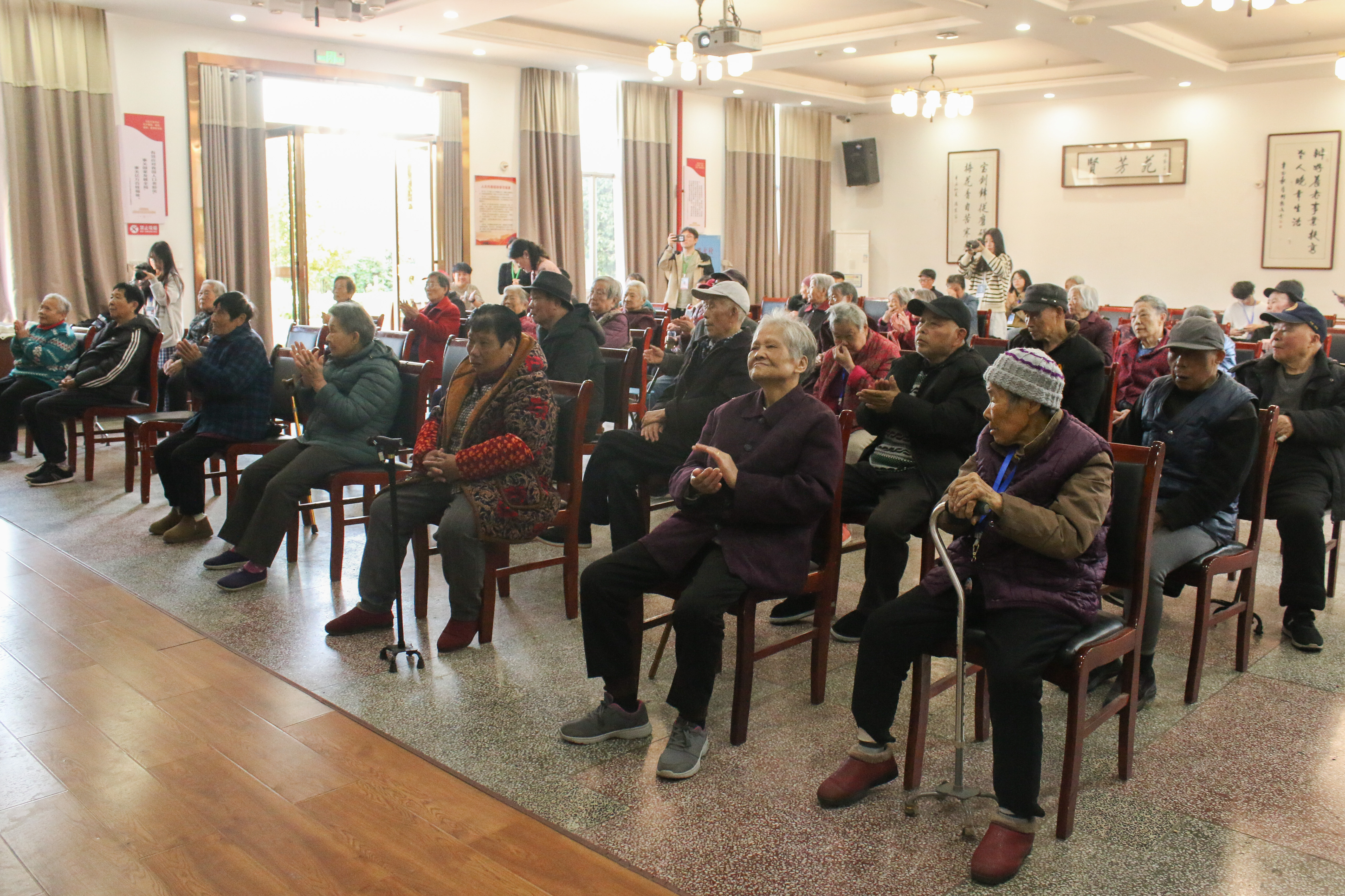 冬日暖阳,情系桑榆。11月29日下午,公司感恩社25名青年志愿者走进湘潭市岳塘区下摄司街道贤芳苑养老中心,开展"情系敬老院,冬日送温暖"志愿服务活动,为老人们送去真挚的问候与温暖的陪伴。