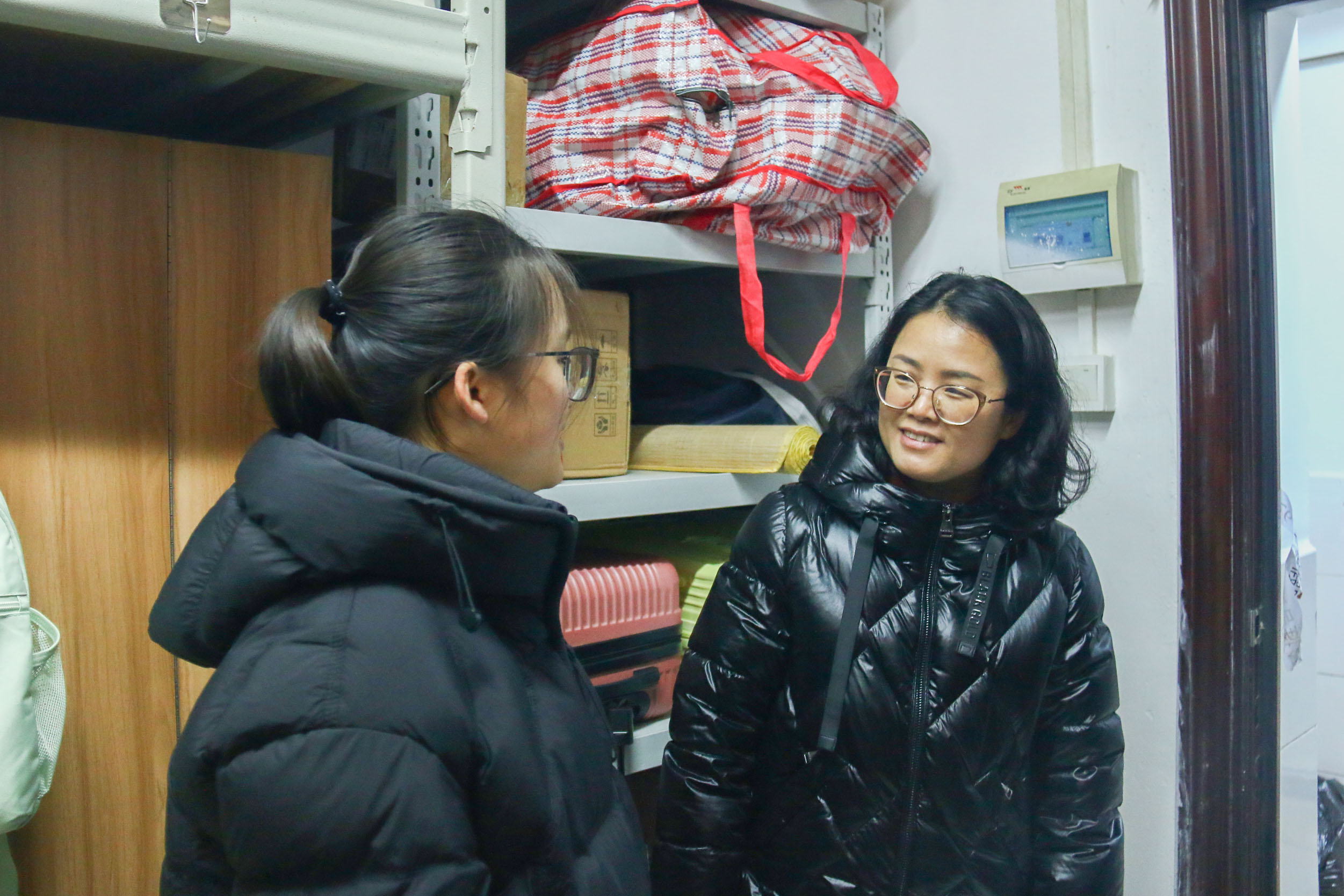 走访过程中,老师们逐一查看宿舍环境卫生、用电安全及设施设备使用情况,耐心叮嘱同学们要增强安全防范意识,规范使用电器,杜绝私拉乱接电线等危险行为,保持宿舍通风干燥、整洁有序,共同营造安全、舒适、文明的住宿环境。与同学们交流时,老师们认真倾听大家在住宿、饮食、学业等方面遇到的问题,并现场指导毕业生就业和考研复试,同时叮嘱大家要珍惜大学时光,合理规划学习和生活,注重劳逸结合。